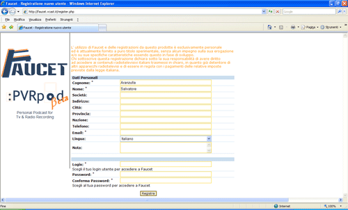 Navigando nei meandri della grande rete, si fanno a volte delle curiose ma interessantissime scoperte. Questo è proprio il caso di Faucet, un sito Internet che ci permette di registrare direttamente dal web i nostri canali radiotelevisivi preferiti e di rivederli o scaricarli comodamente sul nostro PC o il nostro lettore video portatile. Faucet supporta la maggior parte dei canali televisivi italiani trasmessi in chiaro sul digitale terrestre: a partire dai canali Rai, per arrivare ai canali di Mediaset o a La7, ma anche Repubblica TV o BBC World e tante emittenti radiofoniche. Il funzionamento del sito è molto semplice. Una volta compilato il modulo di registrazione e scelti una login e una password è possibile impostare il registratore di Faucet (ad esempio, Rai1 dalle 14.30 alle 15.00) e, al termine della registrazione, ci si collega al sito di Faucet per scaricare la registrazione del canale.