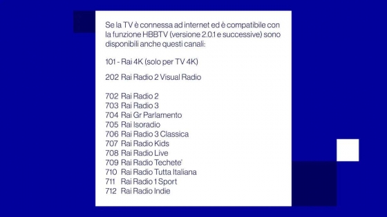 Rai 4K in versione ibrida è disponibile al 101 del digitale terrestre