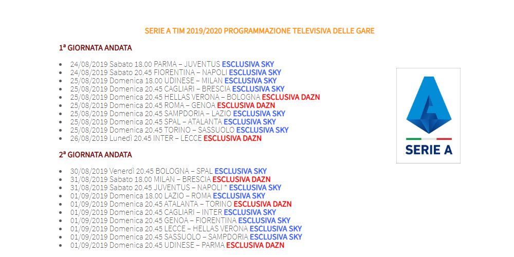 Tutto il prossimo campionato di calcio della massima serie sarà probabilmente disponibile su Sky, grazie ad un accordo che permetterebbe di trasmettere anche via satellite i tre incontri i cui diritti sono in mano a Perform Group
