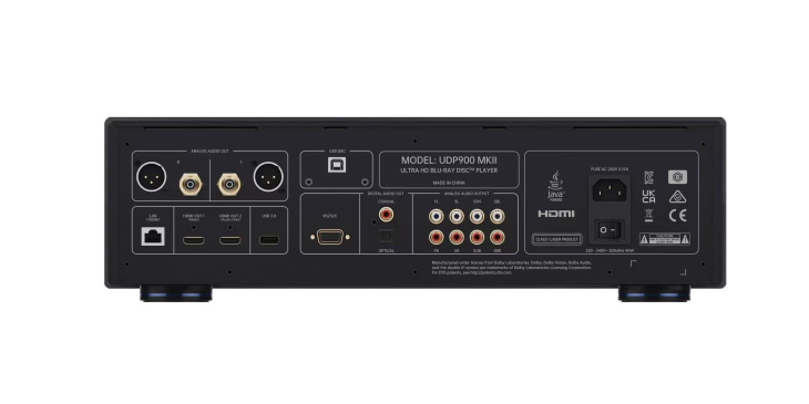 Oltre alle due uscite HDMI, solo audio e audio/video, le connessioni includono uscite digitali ottica e coassiale, porta LAN Gigabit, RS232, e uscite analogiche in formato RCA e XLR. L'uscita analogica 7.1 canali è riservata al modello UDP900 MKII. Dal punto di vista costruttivo, i lettori hanno un telaio in alluminio rinforzato, dotato di meccanica insonorizzata di nuova concezione per migliorare la precisione di lettura dei dischi e ridurre il rumore, mentre la schermatura a doppio strato aumenta l'isolamento dalle interferenze elettromagnetiche. Per il cablaggio interno vengono impiegati conduttori in rame di alta qualità, mentre gli stampati hanno ora connettori JST e Amphenol per migliorare la stabilità e l'affidabilità del collegamento. L'UDP900MKII, vincitore del premio EISA 2025-2026 nella categoria "Home Theater Disc Player", si basa su un'architettura audio rinnovata, incentrata su una coppia di DAC ESS 9038 PRO. L'ingresso USB asincrono con processore XMOS avanzato supporta file Hi-Res Audio 32 bit/768 kHz e DSD512.