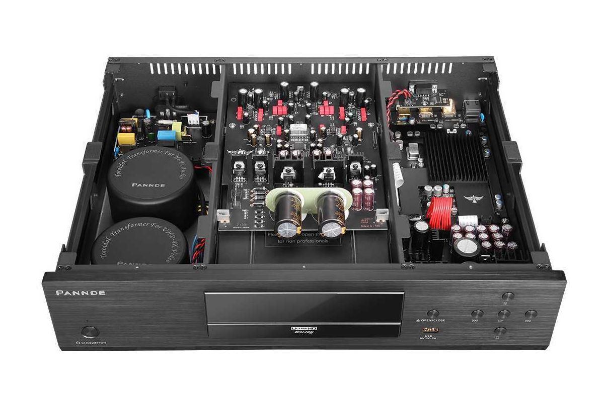 Pannde ha lanciato il PD-6, un lettore Ultra HD Blu-ray universale di fascia premium. Si basa su una meccanica Sony e un SoC MediaTek MT8581. La cura costruttiva è testimoniata daI pannello frontale in alluminio spazzolato, la placcatura oro di tutti i connettori e il telaio in acciaio ad alta rigidità. La foto dell'interno mostra anche un cablaggio ridotto al minimo e uno stadio di alimentazione sovradimensionato. Non manca la seconda uscita HDMI solo audio per la connessione al decoder.