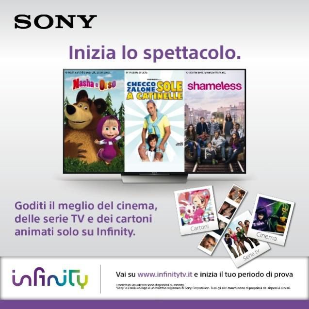 “Per i televisori BRAVIA dotati di piattaforma Android TV, è disponibile da ieri, giovedì 12 maggio, l'App gratuita per il servizio VOD Infinity, che offre contenuti con qualità fino all'Ultra HD, estratti da un catalogo di oltre 6000 titoli”
