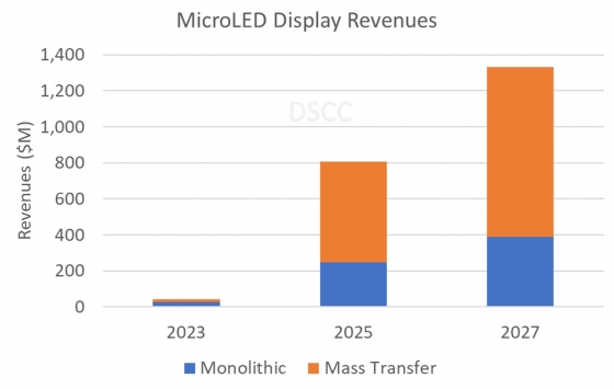 Il mercato dei display MicroLED è ancora piccolo ma potrebbe crescere fino a generare 1,3 miliardi di dollari nel 2027. L'analisi è contenuta nel MicroLED Display Technology and Market Outlook Report, realizzato da Display Supply Chain Consultants (DSCC). Per raggiungere l'obiettivo indicato sarà però necessario abbattere i costi produttivi, in modo da rendere i MicroLED competitivi con le altre tecnologie, prima tra tutte gli OLED. Nel frattempo l'entusiasmo che ha accompagnato i primi annunci relativi agli schermi MicroLED si è molto raffreddato. A sostenerlo è Guillaume Chansin, Direttore della Display Research presso DSCC: