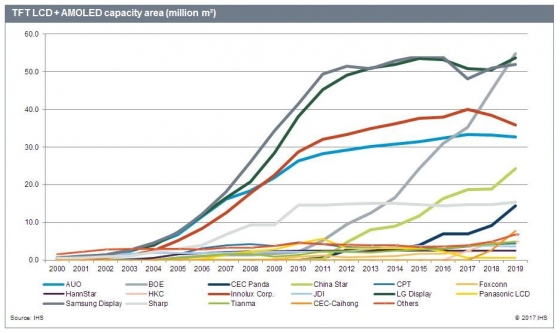 IHS Markit prevede che la superficie totale dei display piatti venduti nel 2018 arriverà a un totale di 210 milioni di m², con una crescita globale del 7,2%, la più alta dal 2014.